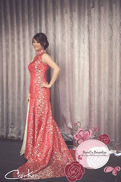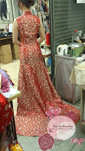 所以一開始的旗袍製作方向是拖尾旗袍加蝴蝶結~